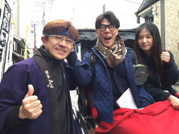 午後より週末のイベント現場準備で筥崎宮方面へ出向く予定にしていたところ、携帯に観光拠点の土産処より電話が。1時間後に2名様の観光対応は可能?という問い合わせで、急遽出動する必要が。出向いてみると、韓国の大学生の団体がお見えで、福岡での観光を紹介する動画撮影の一環で利用させて欲しいとのこと(このやり取りは唯一日本語を話せる引率者の方と)。趣旨を承諾のうえ、近隣の寺院中心の観光案内へ。韓国語はほとんどわからないので、難しいガイドは観光各拠点に設置されているハングル表記をお見せして。その他のやり取りは簡単な英語でコミュニケーションをとらせていただいたのだが、これでも十分意思疎通は図れる。ご乗車直前に三人のうち一人乗れない人を決めるため、日本だとジャンケンにあたるものをやっていたが、グーチョキパーの世界は共通。言葉の壁で完璧ではないにしても、工夫次第でお互いに談笑することも可能なことを実感できた。今後ますます増えることが予想される訪日外国人対応をよりスムーズにするため、日々の勉強が欠かせない。 Written by 人力車の博多人力屋 以下のリンクをクリックして下さると、一票投票されて人気blogランキングに反映されるシステムになっています(一日一票)。毎日更新の励みになります。→人気blogランキング<起業・独立部門> ご支援クリックいつもありがとうございます!ただいま59位に。