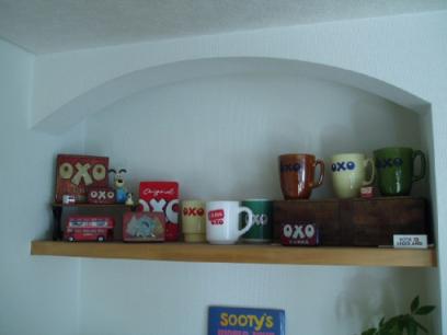 イギリスで有名なスープメーカーのOXO(オクソー)です。1910年頃にはすでにイギリスの一般家庭で使用されていたというスープキューブ。姉がイギリス旅行のお土産として、このOXO の「紙箱入れ固形スープ」を買ってきてくれたのですが、最初、この箱を見たとき、何?何?マル・ペケ・マル??が何でオクソー?ぐらいの認識しかなかった私です(苦笑)。今では、OXOのマグカップ、缶、レシピブックなど様々なものが雑誌などで紹介されることも多くなり、コレクターズアイテムとして、すっかり私もはまってしまいました。お土産でもらったOXO の固形スープは、以前住んでいた家で飾っていたらヘンテコリンな虫に食べられてしまい・・天に召されたのでした(*_*)