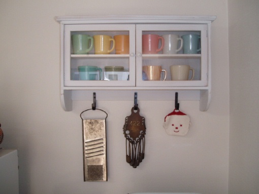 このDハンドルマグは、かれこれ6年前からのコレクションです。6年かかって、やっと10色のマグを集めました。こげ茶にはなかなか出会うことが出来ません。出会いたいのですが、避けられているようです(-_-)。写真では分かりづらいですが、かなり上の方に飾ってあるので、脚立に乗らないと届きません・・(T_T)。
