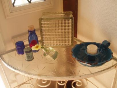 昨年、旦那と裏庭をどうしようか・・・と悩んでいたんですが、ウッドデッキのキットを買って自分たちで作ってみようということになりました。・・が、キットの幅が合わず断念(^^;)。それでは自分たちで作ってみよう!ということになり、ホームセンターで、ブロックと板を買い、防腐剤塗ったり・・の楽しいDIY。度素人の二人でしたが、二日で作り上げました♪ニトリで1個1000円台のガーデニング・グッズを買って置いてみました。裏庭なので、誰の目にもとまりませんが。。縁には、昨日の日記で登場した、使い道のなかったアンティークのガラスブロックを並べてみました。格安!の裏庭ですが、自分ではとても気に入っています(*^_^*)。