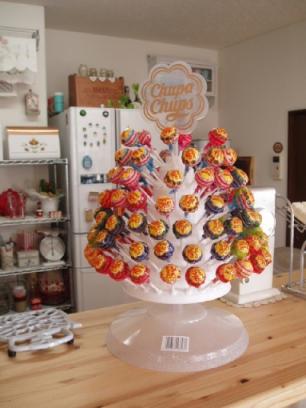 我が家のキッチンカウンターにあるチュッパ・チャプス!このチュッパ・チャプスの入れ物は、私の友達が勤めているお店からいただきました。そして、近所のディスカウント・スーパーで、チュッパ・チャプスを1本29円で大量に購入したにもかかわらず・・・それでもまだ埋まりません。一体何本入れればいいのやら??まだ数えたことはありませんが。我が家の三人娘の友達が遊びに来ると、必ずや歓声&悲鳴がわき起こります。「食べていいよ~」と言うと、みんな真剣に自分のお気に入りの味を選ぼうとグルグルと回しだします。とっても楽しそうにしているのを見ると、私は駄菓子屋のおばさんになった気分です(笑)。