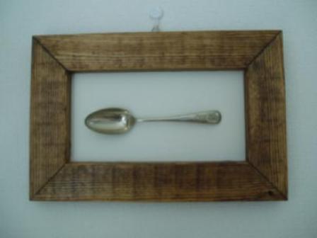 昨日のOXO(オクソー)コレクションに続き、今日は額装された「OXO」のスプーンです。これは私の一押しのお気に入りのアンティークショップ「FREDDY BROS.」のオーナーさんの手作りの額縁です。今、発売されている「イギリスとフランスのヨーロッパアンティーク」という雑誌の中でも、このお店の商品がたくさん紹介されています。ここのオーナーさんは、手先がとっても器用な方で、木工・裁縫などなんでも出来る方です。お店に置いてあるアンティークもご自身でヨーロッパに買い付けに行かれるので、商品の説明においては天下一だと私は確信しております(*^_^*)。OXO のスプーンも額に入れるとこれまたかわいい~です。スプーンはちゃんと取り外しができるんですよ~。