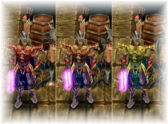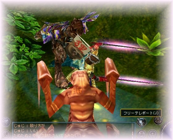 こんにちは!じゅじです。最近は・・・あまり入ってないので書くことないです。入ってない訳ではないのですが、ギルドに挨拶をしに入ってPTがあればやる、無ければ落ちるといった感じです。短いときで1~2分くらい、長いときで2時間いるかなぁ。。。以前に比べるとかなり少なくなりました。昨日はラピスで30分くらいだらだらとして、そのあと友人に挨拶しに行こうと思いコエリスの6鯖へ・・・いるかなぁ?と思いつつ内緒を送って見ると・・・いた!(゜∀゜)アヒャ マジで火炎に来ないか?とお誘いをうけ、かなり自信の無い虚弱体質マジで出かける事にしました。最近の森野良PTは知らない人が多くなり、人見知りする自分はあまり参加することもなくなり、知り合いの多い火炎では支援以外のキャラは、LV96では弱すぎで参加を見合わせていました・・・(LV100になったら行きたいと思うけどね)お誘いを受けたときでも、「すぐ死ぬけど、それでもいいならお願いします。」が口癖のようになってしまってます(´∀`*)ウフフでも、昨日のPTは火炎といってものんびりムードだったので、変に気を使うことなく楽しかったです。ケースさんはじめPT組んでくださったみなさん、ありがとうございました。また誘ってくださいね~SSはエンタソロに行く時の乗船待ちのときに撮ってた、フェニサンダー鎧の色の変化を・・・それにしてもつぎはぎで色の統一性のない装備・・・・・・・見るたびに(*´Д`)оО(・・・ダサw)