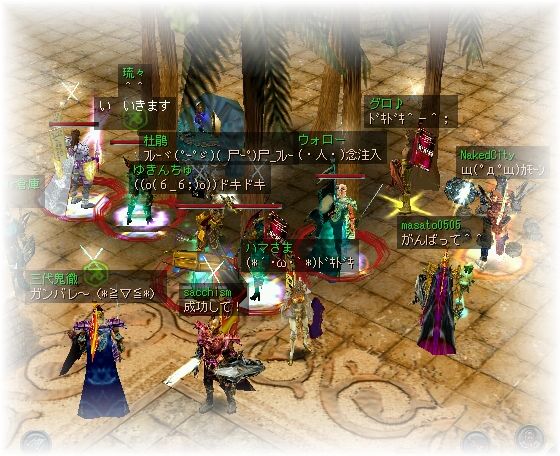 こんにちは!じゅじです。ラピス・ワールドにいるサブキャラの「シュリ♪」のギルメンの琉々が、バウルの完全体合成をするというので、応援しにいきました。結果は・・・またご本人のブログで書かれると思うのでここでは書きませんが、下記の画像をみてもわかるようにたくさんの人が応援にかけつけました。これは彼女の人柄によるものでしょうね・・・自分も見習わなければと思うことも多々あります。さて、そのあとは「シュリ♪」のレベル上げに窓へ~・・・PTを組んでもらいましたが、支援なしはかなり痛いです・・・Σ(´д`;*)できればDEX極のまま育てようと思っていたのですが(補正込みSTA36)ちょこっと振りました。いまのところ、支援さんのいるPTではめったに死ぬ事はないですが、これから先はきついのでやはり装備が整わない限り、STAに振るしかないのでせうね・・・結局はうっきーと同じ道をも辿るのか・・・(´・ω・`)ショボーン