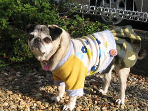 スカート買いました~♪最近、迷彩柄に凝っていますワンに服を着せるのは“防寒”のためだから何でもいい!って頑なに思っていたのですが、ブログをはじめて、お友だちワンちゃんの 可愛らしいお洋服姿を見るようになって、だんだんと嵌ってきちゃったんだな、これがw幸いなつめは服を嫌がらないので、着せるのが楽しいよ★ お知らせ ★マナーちゃんバッチ・ミニ と マナーちゃんステッカー(防水加工) 数量限定、無料配布中です詳しくは 昨日の日記 を見てね!マナーちゃんバッチで フン放置撲滅運動 私はフン放置はイヤ!!