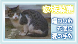 昨夜はニャンママの愚痴日記だけになってしましました。反省、反省。珠奈にきてた京都からの里親さんのお話は、まだお返事がないそうなんです。まだ、判りませんが、再びこの場を借りて珠奈の里親さんお願いをしたいと思います。昨日の珠奈は、金網越しではありますけど、ニャンママが横に坐ったままで「珠奈~大丈夫、大丈夫やで~」と、小声で声かけしてても缶詰全部食べました。でも、馴れるのが無理なら、捕獲器での保護を検討しています。そして、病院で検査、治療(避妊も)皆さんにお願いです。我が家はとても狭いハイツな上に、心筋症の珠里がいては珠奈を連れ帰れません。里親さんが見つかるまでの一時預かりをしてくださいませんでしょうか?お願いばかりで申し訳ありません。不勉強な私達で、表現方法に失礼があればお許しくださいね。