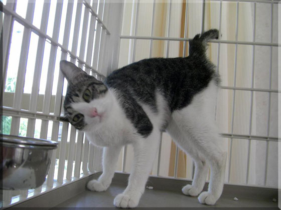 昨日のスリスリより、頭が下がって、「スリスリ度」UPシッポの毛も少しづつ戻ってきてもう少しで元通りになりそうです。こんなアップの写真も撮らせてくれるようになってくれて、ニャンパパ感激!上目づかいと、網戸の向こうの緑がバッチリの写真です。可愛いですね!!!珠奈ママさんが、ニャンパパに送ってくれた写真です。ニャンパパより写真上手なような気がする!!!ニャンパパ、写真に感激!ありがとう!珠奈ママさん。。。