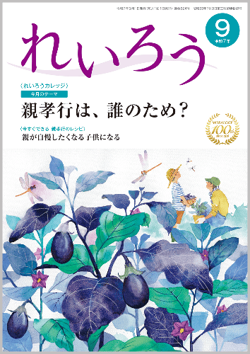 初夏から秋まで長く出回る茄子。光沢のある黒に近い紫色の表皮と中身の翡翠色の対比も美しい。ことに「茄子紺」と呼ばれる鮮やかな紫色に漬かった茄子のぬか漬けの味と色合いの美しさ。なのに姑の嫁いびりというネガティブな解釈もあることわざ「秋茄子は嫁に食わすな」に登場させられてしまったのが、何とも気の毒である。親孝行は、誰のため?「孝は百行の本」という言葉があるように、親孝行はすべての善行の基本であると考えられています。なぜ、それほど親への恩返しが大切とされているのでしょうか。それは単に”親のため”だけに行うものではないからです。今月は、改めて親孝行について考えてみましょう。【主な内容】<今すぐできる 親孝行のレシピ 23>「天国の両親を安心させられる」親孝行のアドバイス / 志賀内泰弘<絵草紙屋れいろう堂 11> なまづ蒲やき / 作者不詳<れいろうカレッジ>今月のテーマ:親孝行は、誰のため?【ステップ① 考えてみよう】親孝行がしたいと思えません【ステップ② 学んでみよう】報徳仕法で多くの人々を救った二宮尊徳に学ぶ、「親孝行」の大切さ / 歴史作家 河合 敦【ステップ③ 深めてみよう】言外の真理を悟りてこれを行うどうすれば親への孝行になるのか「父母の心を安心させることだ」と尊徳は断言自分の心を正しく保ち、身を修めることがそのまま親孝行につながる