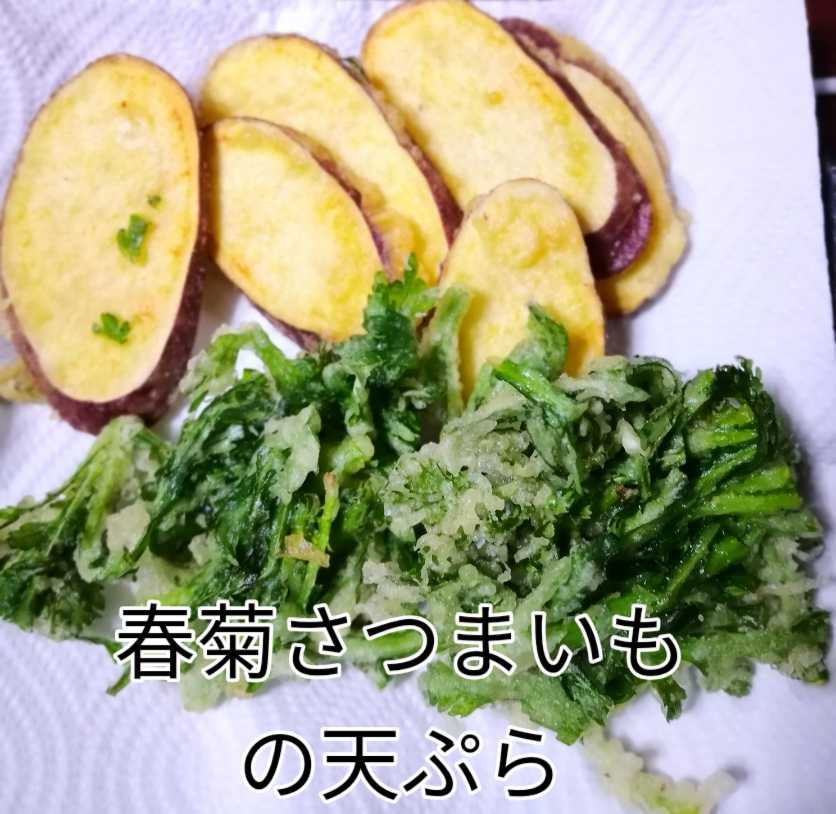 夕食に食べました 春菊のほろ苦い味が好きです😋