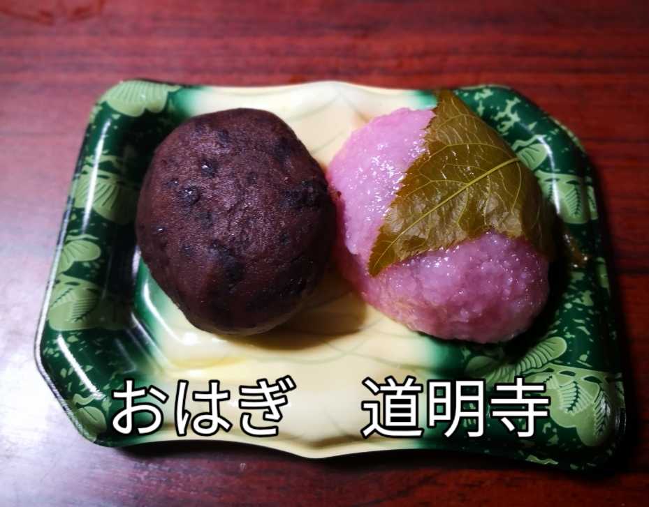 お彼岸で おやつにお茶と🍵 おはぎと道明寺を