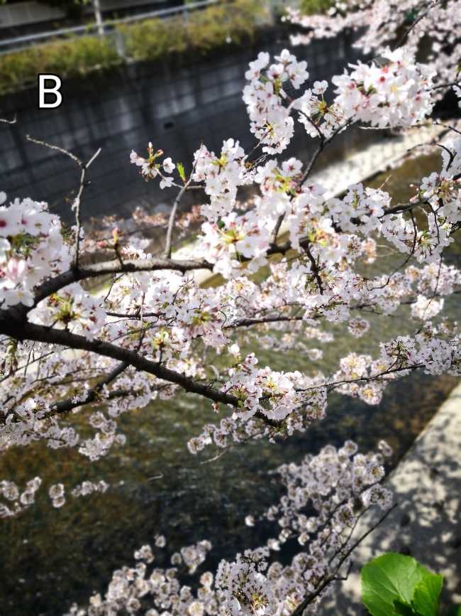 綺麗な流れの神田川の流れを背景に桜を撮影