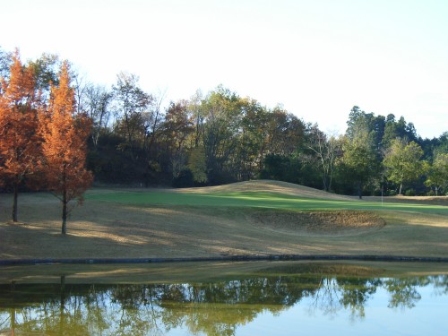 18日は茨城県常陸太田市にあるピートダイ設計の新・西山荘CC『ら、』のハンディ頭であるケムちゃんと一戦交えてきました前日までの雨が大気中のチリを洗い流し、美しいコースがより美しく浮かび上がっていました新・西山荘と言うコース、何名かのゴルフ好きの友人達から噂を聞いていて、本当に楽しみにしていたコースだった前日に準備を整え、カメラを持ってコース写真を撮るべく机の上に準備をしておいたのに、なぜかゴルフ場に着くとカメラが見当たらず、使い慣れない携帯のカメラで我慢、ガマン、、、この日はハラグローズの3人が、ケムちゃんに挑戦1人で戦っても勝てるわけはないので、3人のホールベスト対ケムちゃんの素のスコアで対決相手がケムちゃんだけにパーでは引き分けに持ち込むのが精一杯、ただし幾つかのボギーは許されるだろうハンディが13・15・20のハラグローズからすれば、誰が1人がパーを取り、悪くても4-5ホールをボギーで上がれば勝負の格好が着くと算段していたが、果たして・・・前日の雨もあってか、フロント9を終えてダフったショットがいくつかあり、ケムちゃんが5オーバーそしてハラグローズは6オーバーと想定以上に打ったにも関わらず何とか勝負の体をなしていたちなみにjunhiroのフロント9は44(18)でドライバーはかなり安定しているもののミドルアイアンがどうにもこうにも酷い ケムちゃんの顔でエキストラのおつまみをいただきおいしい昼食でお腹を満たした、バック9最初の2ホールはグリーンを狙ったショットのミスをAPでリカバリーしての寄せワンで凌ぎ何とかケムちゃんに喰らいついた12番のショート、ケムちゃんのティショットは美しい弾道でそのままカップインかと思われたが惜しくも30センチで楽にバーディを決められて2ストローク差に13番ではチチさんが長いバーディパットを決めてストローク差を1に縮め、14番もチチさんがパーセーブし分けて臨んだ15番ホールセカンド地点からのケムちゃんのスプーンでのショットは今まで彼とラウンドしてみた中でも最高のショットでした残りが220Yほどの向かい風の中、スプーンで放たれたボールは美しい弾道で風の中を進み舞い上がりグリーンを捉え、ピンから5Yへこのショットはどんなに逆立ちしても勝ち目のない相手に試合を挑んだことをハラグローズに強烈に思い知らしめた一撃でしたその後、ケムちゃんは気合の篭ったショットを紡ぎ、バック9は1バーディノーボギーの35、都合76という素晴らしいラウンドでした一方ハラグローズ達は敗戦を覚悟し、スコアを崩し2つのホールで痛恨のダボを記録して40、トータル82と1対3の挑戦ながら6打もの大差をつけられてしまいましたjunhiroもバック9の終り5ホール連続でダボを打ち、48、都合92点と個人的に目標としていた80台はなりませんでしたお椀をかぶせたような大きなドームが二つ、クラブハウスとレストランでしたその中に入るとご覧の通りの、寄木でできたアーチが何とも美しく、チェックインをするのも忘れてそのアーチに見入っていましたアップの写真がこれラウンドを終え、汗を洗い流し、今日一日junhiro達を芯から楽しませてくれた素晴らしいコース、仲間、紅葉、青空、雲、日立の海を思い出しながらこのアーチの下で友と語ったのですコースを取り巻く森が夕焼けに赤く染まったコースには多くのマウンドがあり、その中を進むうちに、自分がどこかよその国のリンクスをラウンドしているような錯覚に陥りましたそう、正しく山の上のリンクスコースですケムちゃん、チチさん、マイちゃん、本当に素晴らしい一日をありがとう♪春、花が咲く頃にまたここに帰ってこよう!そう心に誓って家路に着いたjunhiroでした