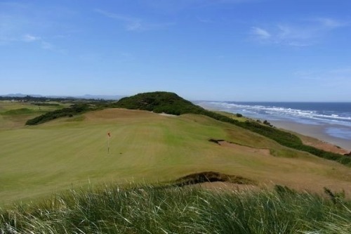 さあ、今日は1日に36ホールを歩きで回る日だバンドンリゾートには4つの18ホールのコースと、昨日回ったBandon Preserveというパー3のコース、さらにオーナーのために作られた7ホールの隠れたコースが存在しているそうだその隠れたコースは回る事はできないが、今日と明日で、4つの18ホールコースを回る事になっており、朝には4番目に出来たコースのOld Macdonald、午後には3番目に出来たコースのBandon Trailsを回る予定だOld Macの7番ホールは海を見下ろし、ホッと一息つけるホールだ。ただし、急な打ち上げを制した者しかこの景色を見る事はできない長丁場となる今日からはキャディを雇った一人で二人分のバッグを担いでくれる屈強なキャディだjunhiroとマイちゃんのバッグを担いでくれるのはダレンクラークに似た風貌のクロードというキャディで、一方チチさん・ボギさんはロジャーというキャディがついてくれたロジャーを先頭にラフを行くチチさんとボギさん今回のバンドンのコースの中でみんなにぜひ体験してほしいと思っていたコースがこのOld Macdonaldだった2010年の8月に初めてラウンドした時にこれがゴルフ場なのかと自分でもビックリしたコースだった50年、100年経った時にはこのコースは素晴らしい評価を得ているに違いないと思ったコースをいつも一緒にラウンドしている三人にぜひとも体感してほしかったプレッシャーかかるよねぇ、このバンカーOld Macdonaldはバンドンの他のどのコースとも似ていないどのコースと比べても、これほどの傾斜の中でボールをヒットし、パットするコースはないだろうゴルフとはかくも傾斜に翻弄され、利用するゲームなのだと思い知るチチさんがラフからのショットに挑むラウンドを終えての印象を尋ねると、皆もこの特別なコースは相当印象に残ったようだった遠くの丘の上に立つ木がこのコースのシンボル的なもので、色々な場所から目に入る午後は林間コースの趣があるBandon Trailsをラウンドした4つのコースの中で最もアップダウンが激しいコースで、2つのバッグを担いで行くキャディ達の体力たるや賞賛に値するところで、Bandonに入ってから、最初のパー3コース、Bandon Dunesの9ホール、そして今朝のOld Macの18ホール、Trailsの2ホールと合計40ホールを1個のボールも失くすことなく回って来たのが自分の中の密かな自慢のタネだったのだが、残念な事にTrailsのラウンド中にはボールを3つ失くしてしまったこのパー3はしっかりキャリーさせないとグリーンに届かないようにティグランドから見えるが、実はこのもしゃもしゃとグリーンの間にはスペースがある。設計の妙ですねぇ歩きでの36ホール、特にアップダウンの多いTrailsでの歩きは特に大変だが、クロードがバッグを担いでくれ、的確なアドバイスをくれるのは本当に心強い林間の趣があるとはいえ、コースはやっぱりリンクスのそれのようで、しかもアップダウンが大きいのだから始末が悪いところで、ふだんのストローク戦ではなくそれぞれの持ちハンディをベースにしたポイントターニーでのゲームだと前日の日記にも書いたのだが、ターニーでのプレイには理由があるリンクスでは一つのミスショットによって、あるいは思いがけないバウンドでボールがラフに入ってしまった事により、上がってみれば8打や10打を費やすこともザラに発生するそうなるとストロークでの競技は難しいし、また、球探しや、多くのストロークによって渋滞を引き起こすこともあるポイントターニーでは、たとえばバーディが3ポイント、パーが2ポイント、ボギーが1ポイントでダボ以上では0ポイントとすることによって、ダボ以上が確定した場合にはそれ以上ボールを打ち続けずにピックするという選択肢が加わる普段からストロークプレーをしている多くの日本のゴルファー(自身を含めて)はピックアップすることによってスコアがつかない事を気にする事もあるかもしれないが、4人でペースに気を配りながら進めるためには実に理にかなったゲーム方法なのだそれにピックアップする事によって心もリセットできるし、スコアで競うよりもゲーム性が上がるようにも感じる事があるTrailsの最終ホールはこんなウネウネをずっと登っているタフなホールだこの夜もマッキーのパブで食事をとった。さすがにみんな疲れが出ていたが、それでも36ホールを終えた満足感と、ビールの素晴らしさを堪能したこの夜はボギさんが電話で席を外したすきに、某氏が彼のピザの上に大量の唐辛子を乗せ、それに気づかずにピザを咥えたボギさんが口から火を噴いたその一部始終を見ていた隣のテーブルの3人組が爆笑し犯人をボギさんに知らせるという一幕もあった。彼らはシアトルからやってきた建築屋さんで、年に一度ここにやってくるのだという僕らもそうやって毎年のようにバンドンを訪れる事が出来ると良いのだけれど現実的には難しいだろうが、次はスコットランドに行こうと誓い合った4人だったTrailsのクラブハウスから見る18番ホールの