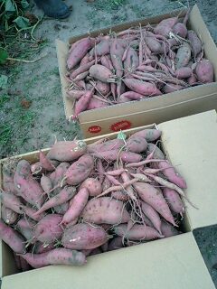 午後はじいじの畑でおイモ掘り。