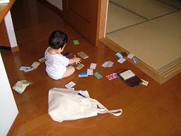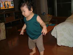 先週の土曜日、おもちゃをとろうとしたムスメっちが一歩踏み出しそのまま5歩ほど歩いた。本人がびっくりしたみたいで、また歩いたら今度は10歩!!つたい歩きばかりしていたけど、ムスメっちあんよ大成功!しばらくは、よたよたしてリハビリ患者のような歩みだったけど、段々としっかりとした足取りになってきた。コツがつかめてきたのかな?最近、癇癪と後追いがひどくなってきたので、手を焼いていたけど歩けるようになってからご機嫌でうれしそう。彼女なりに歩けなったのがもどかしかったのかもしれないね。片手に何かもって歩くのが安定がいいみたいで、カバンとか化粧ポーチをいっつももって歩くことが多く、今日はスリッパをもって歩き回っておりました。これで、靴はいて公園にいっぱいいけるね!!