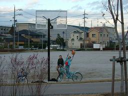 ムスメっち妊娠した頃、近所の区画整理地区内の広い敷地に囲いができて立ち入り禁止になったのだが、広大な公園になると聞き、とってもうれしくて楽しみにしていた。そして、1年半たった今日がいよいよ公園OPENの日なのだ。午前中は式典などで遊べないため、午後から寒い中ムスメっちもこもこに着込ませて遊びに行ってきた。ここは、駅に近いので整備して新築の家やらマンションやらが建つと思ってたから本当にありがたいねえ。贅沢な公園だわー。。グランドにはバスケットゴールも置いてあり大人が運動するのにももってこい。子供用の遊具が集中しているところへいくとそのカラフルな遊具をみてムスメっち大喜び!!寒さなんて何のその。「ほおー」とか「ううおー」とか宇宙語で喜びを表現してる。大変気に入ったのはいいのだけど、これ以上いると風邪ひきそうなんで帰ろうとすると、なかなか帰りたがらない。無理やり抱っこすると、かなり怒って抵抗される。半ば拉致状態で脇に抱えてバギー押しながら何とか家までたどり着いたら、こんな寒いのに汗びっしょりになってしまった。