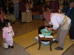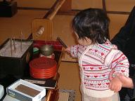 いやーなんとも久しぶりのブログになりました。昨年中に一回は更新したいと思いつつ、パソコンの不具合や自分自身のばたばた生活でとうとう年越ししたのが反省なり。。。ムスメっちは相変わらず週3回は保育園に通っています。すっかり馴染んで、先生の名前も友達の名前もよく覚えて家に帰ると色々とお話してくれます。17時お迎えなのですが、時々早めに迎えに行くとダンスの時間に遭遇して、かなりノリノリで踊っているのが笑えます。年末年始は旦那さんの家族と福井県の温泉に2泊3日で温泉旅行に行ってきました!大晦日の日に旅館のロビーで餅つきがおこなわれていて、見学しているとかなーり興味津々。気がつくと私たちから離れて一人でまん前で見学しているので、主催者さんが気を遣ってムスメっちにも餅をつかせてくれました!正月も終わり、私のお休みの日は児童館にかよう生活がもどってきました。最近は「おかあさんごっこ」が好きで人形を寝かしつけして背中をとんとんするのがブーム。保育園の昼寝の時間に先生にやってもらっていてゆりかごの歌つきです。ちなみに背中にはしょってます。今年も細々と続けていくつもりですのでよかったらみてやってください。では、2008年もよい年でありますように!!