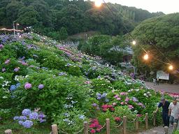 朝テレビをつけたら、蒲郡の形原温泉であじさい祭りがやっていて、とーってもきれいだったので急遽いくことに決定!21時までライトアップをしているしてるらしいので暑さに弱い私たちは夕方から出発することに。到着すると色とりどりのあじさいが辺りを埋め尽くしていた。全体で5万本あるらしいのだ。「日本のアジサイ展」として100鉢ほど展示説明がされている中で、私的に好みだったのがこのアジサイ。「未来」という名前のアジサイなのだ。他にも「ホワイトダイアモンド」「プリティーキッス」などアジサイってこんなにおもしろいネーミングがたくさんあるのね。ムスメっち、しっかりおとうちゃんに抱っこされてはしゃいでアジサイみてたので、安心してじっくりと長い時間見学できたのだ。だけど、ムスメっちのむちむちふくらはぎに蚊にさされた跡がみっつも。。。赤くこんもりして面積も広くなってきて、かゆそう。。。。ごめんね、虫除け対策何にもせずにぶらぶらしてたよ。これからの季節は気をつけなきゃね。