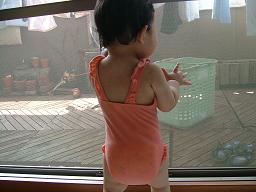 お誕生日に買ってもらってまだ入ってなかったプールに今日ようやくはいることにした。最近、買った水着を着てムスメっちはスタンバイOK!冷たくて気持ちいいのか、大きい声上げてとても上機嫌で遊んでくれた。やっぱり、暑い日は水遊びにかぎるねー!!