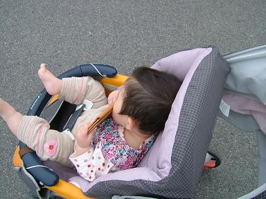 久々の日記の更新になってしまった。最近、ムスメっちの動きが活発になったたのと午前寝がなくなって昼寝だけになったので自分の時間がすっかりなくなってしまった。家にいるのがつまらなったのかか、外に行きたがり、部屋にいると間が持たなくなってきているのだ。そうなると、毎日どこかに出かけているので夜になると私も1日の疲れがたまり、一緒に寝てしまうことが多い。旦那さんが帰ってきて起きることが頻繁に。で、1歳3ヶ月にはいったムスメっち。まだ、歩けないんだなあー。たっちは何とかできてるんだけど、歩こうとするとどっかにつかまってしまうんだよね。でも、彼女なりに毎日がんばっとります。今日は近所にオープンしたスーパーに行ってきた。オープン初日なんで、混んでるとは覚悟してたけどそれ以上の混雑にへとへと。でも、とにかく安い!!買いすぎて、来週中は買い物なしで食事つくれちゃうね。