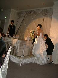 今日は高校時代の友達の結婚式。結婚式といえば、30歳前くらいは毎月のように行っていた時期もあったけど、最近はとんとお話も無く、久々なのでとっても楽しみにしていたのだ。で、これまた久々に念入りに化粧をして、お洒落して電車に乗り込むと何だか独身時代に戻ったみたいでうれしい!お式は、とっても素敵な教会で行われ、神父さんのお話や結婚の誓いを聞いていたら、5年前の自分のときを思い出した。当たり前だけど、私も結婚式で「死が二人を分かつまで」愛し合い慈しみ合うことを誓ったんだよねー。日々のめまぐるしい生活ですっかりそんなこと忘れてるけど改めて「初心わするべからず」で頑張ろう。披露宴でこの日一番の幸せな友人は清楚だけどセクシーなウエディングドレスと黒と赤がかっこいい名古屋友禅で登場。両方ともとっても素敵で、特に和装はよく似合っていた。自分の時は和装しなかったけど、こんなに素敵なのみちゃうとやっておけばよかったと今さらながらちょっと後悔したりして。。。もし、もう一度結婚式あげることがあるのなら、是非和装したいなあ。アットホームで和やかな式が終わり、実家にムスメっちを迎えに行くと、7時間ほど預けた割にはご機嫌でばあばと遊んでいた。話によると、昼寝も2時間して、食事もこれでもかというくらい食べ、ひたすら部屋の中を歩き回っていたそうだ。出かけに悲しそうに泣いたので、ばあばを困らせてるだろうと思い、急いで帰ってきたので結構拍子抜け。子供って親が思うよりも適応力があるのね。