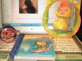いや~、今日の仙台は大雪だったな。って、市内での積雪はたかが数センチ。しかし普段あんまり雪が降らない仙台にとっては大事件なんですな。豪雪地帯はちゃんと除雪が行き届いてるし、たとえ雪道でもいわゆるギシギシした雪なら車も走りやすいし、歩くのもそんなに悪くない。しかし仙台は除雪は全然しないし、寒いもんだからすぐにガチガチに凍ってしまって、自転車はコケるわ人はコケるわ。で、ちょっと陽が当たってるような場所はビチャビチャで、車が脇を通れば服が汚れるし。ほんと困ったもんですよ(*_*)しかし全国的に寒いみたいですな。仙台の明日の朝の気温予想は-2度。いま天気予報見てたら、佐賀で-3度。名古屋で-5度だってさ。かと思うと、北海道で-3度とか。いったいどうなってんだか・・・_| ̄|○全国どこでも寒いみたいですから、皆さん気をつけて下さいネヽ(^o^)丿さて、今日のオイラ。お土産をもらったのだ。オイラのかわいい弟ちゃんが会社の旅行でグアム島に行ってきたのね。いや~、うらやましいですな。オイラもかつてはグアムに行ったもんだ。その時、ちょうど弟の会社もグアムに旅行に行ってて、なんとも奇遇なことに、お互いがすぐ近くのホテルに泊まってたのね。会うことはなかったけど、なんともビックリ!で、弟は元気有り余ってちょっとしたパフォーマンスを披露して。そこでケガしちゃったのね(*_*)で、グアムの病院にお世話になったそうだ・・・_| ̄|○いや~、ある意味貴重な経験をしましたな(^_^;)今回は何事もなく帰ってきたようで、オイラもひと安心でしたヽ(^o^)丿さて、グアムのお土産なのだが・・・↓左にあるのが、スパ○ダーマンのヨーヨー。右はかわいい鳥さんのフォトスタンド。で、真ん中に注目!なんとキティちゃんのフォトアルバムっすよヽ(^o^)丿いや~、全部オイラの大好きなものばかりヽ(^o^)丿こりゃキティちゃんも大喜び間違いナシですなヽ(^o^)丿さすがはオイラのかわいい弟ちゃん。よく分かってますなぁ。大事に使わせてもらいまっせヽ(^o^)丿グアム島はとにかく暑いのね。しかも紫外線の量が日本の比じゃなくて。あっというまに日焼けしちゃいます。日本人は基本的に肌が弱いからね。しかし現地の人ってどうしてんのかねぇ。日焼け止めを塗るのが日常なのかもしれないね。オイラもグアムに行った時は2日ほどいたけど。真っ黒になって帰ったもんだ。また行ってみたいな。国内旅行より安いし、仙台からなら飛行機ですぐだし。あ、でもオイラのパスポートの期限が切れちまってたよ_| ̄|○もう会社で旅行に行くこともないから、あとは新婚旅行までどこにも行かないのかな(^_^;)新婚旅行かぁ・・・。いつ行けるかな。一緒に行きたい人だけはもう決まってるんだが・・・(^_^;)さて、楽しい冬休みまであとちょっとだ。今日はちょっといい結果が出せなかったんで、明日はしっかり頑張って来ようと思います。