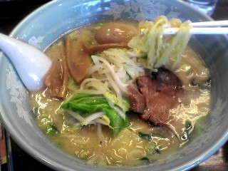 いや~、秋田っすよ。昨日から行ってたんだけどね。昨日はすっかり日記をサボっちゃって。大変失礼しました。(^_^;)今日はいつもの通り、ラメーンネタ全壊で書かせて頂きますわ。昨日の秋田はとにかく寒くて。雪もちらほら。まだまだ本格的な冬じゃないけど。高い山はすっかり真っ白。すんごくきれいだったのヽ(^o^)丿写真は撮ってないけど。今日はおやじみそラーメンってのを食した。↓北海道みそラーメン。いや~、これ、秋田に来るたびに食べるんだけど。いわゆるこってりみそラーメンなの。オイラってば、最近はこってりだのスタミナだのって、とにかく濃いラーメンばっかり。そりゃおいしいから、いつも食べたくなるのはしょうがないんだけどさ。でもさ、ふと考えてみると。あっさりで極上ラーメンっていうのがあんまり見ないよね。こってりだと、なんかいろいろと混ぜものをして、味をごまかせるような気がするけど。あっさりってすごく難しいかも。あっさりだと、ややもすると、ただあっさりしてるだけで。全然味に奥深さがなくて。いわゆる『素ラーメン』みたいな感じになっちゃうよね。あっさり極上ラーメンってなんだろう??スープはすっきりと澄み渡り、脂も少なめ。でもしっかりした味があって、化調の味はしない。細い縮れ麺に、薄いがしっかりと仕込んだチャーシュー。いや~、あっさりラーメンって難しそう。オイラ、これだけラーメン好きだから、脱サラしてラーメン屋さんでもやりたいなって本気で思う時がある。オイラはこってりラーメンが大好き。でもこってりはほぼ食べ尽くした感じがするし。オイラがもし店を開けるなら、ぜひあっさりラーメンで勝負したい。身体に良いあっさりラーメンヽ(^o^)丿こういうお店って、意外に見かけない。スタミナこってりラーメンはいっぱいあるが(^_^;)どなたか、あっさりでおいしいとこ教えて下さい。しょっぱいのは絶対にNGですよ。今日のこってりみそラーメン、最高にうまかったよヽ(^o^)丿こってりはほかのお店で食べて、オイラはあっさりラーメンを作りたい。こってりラーメンに飽きた人が来てくれて、あっさりでもこんなにおいしいんだ!って思ってくれるような味を作りたい。あぁ、ほんとにやりたくなってきたな・・・しかしオイラには軍資金がない・・・○| ̄|_そういえば先日、賞与を頂いた。ありがたく車検とボナース払いに使わせて頂きます。そして残高はプラマイゼロって感じかな(^_^;)明日はまた忘年会に参加。今度は暴年会にはならない見込み(^_^;)