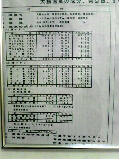 いや~、青森県大鰐温泉。良かったなぁヽ(^o^)丿ま、だいたいは昨日の日記で書いた通りなのだが。画像をupしてなかったので。今日はまとめて。まずは大鰐温泉の泉質から。↓う~ん。これじゃなんて書いてあるか分からないよね。なんか携帯のカメラ機能って、こういうのを撮るのに弱い感じがするんだよね。オイラは毎回ホワイトバランスや撮影シーンの設定。しかも露出の調整までしてるってのに・・・_| ̄|○ま、しょうがないな。で、大鰐温泉で特筆すべきは温度なのね。これでは分からないかもしれないが、温度は68.8度って書いてあんのよ。いや~、いわゆるあっさり系の温泉で、これだけ温度が高いってのはほんと珍しいよ。温度が高い温泉って、たいがい火山の近くで、そうなると硫黄泉とかが多いんだよね。ここはナトリウム・カルシウム系の温泉だし。昨日も書いたが、まるで熱いミネラルウオーターよ。たぶん飲んでも大丈夫なんだろうけど。飲用の許可はなかったのね。で、浴室内は湯気がすごすぎて撮影不可_| ̄|○お部屋のご案内をしましょうヽ(^o^)丿 ↓洋室です。なんか変じゃない?!ベッドがあるのは分かると思うが、テレビの脇になぜか洗面台があるのね。で、ベッドと脇に隙間がほとんどなくて、ベッドの脇を通ることは不可!どうしてもまだがなきゃいけないのね(^_^;)さらにこちら。↓このガラスの奥がお風呂になってるのよね。部屋から丸見えです(^_^;)さらにこちら。↓前述の通りなのだが、なぜか枕元に洗面台があるのね・・・(^_^;)さて、ここは洋室っていう扱いなのだが・・・以上のことをまとめると、ここって、かつては家族風呂として利用されていた場所なんだなと推理する。ベッドとテレビを取り除いたら、普通のお風呂場だよこれ!いや~、ホテルはうまく考えたもんですなぁ。あれ、そういえばさ、この部屋のお風呂って、もしかして温泉だったのかな?ありゃ~、オイラそれを確認するの忘れたよ_| ̄|○なにはともあれ、大鰐温泉。一言で言えば、熱いミネラルウオーターということにしたい。さて、大鰐温泉を堪能し、オイラは八戸に向かって。今日は接待の飲み会があったので、大急ぎで仙台に帰ったのさ。で、待ち合わせをして飲み会スタート。↓今日は4人で行ったのだが、オイラのほかに一人飲めない人がいて。いや~、今日は飲めない同士で語って、早めに帰ろうと思ったのだが。甘かった・・・オイラは結局最後までつき合わされ、ようやく家にたどりついたのは午前4時!_| ̄|○信じられないよね・・・。ま、このことはここではあまり触れないが。あまりにもめちゃくちゃだよ。いくら営業の仕事してるからってさ、これは常識外れてるよね。う~ん、ご来訪の皆さんにオイラの正体がばれている以上、多くは語れない。ま、とにかく常識外れだということだけを強調しておきましょう。そのうちどっかで書きますよ(^_^;)でもね、うれしいこともあったんだよ。キティちゃんが、オイラの帰りを待っててくれたんだよヽ(^o^)丿いや~、ほんとオイラ帰ったの4時だったのに。キティちゃんは寝ないで待っててくれたヽ(^o^)丿うれしくて涙が出そうだったよ。ほんとにありがとうヽ(^o^)丿明日とあさっては、キティちゃんのためだけに時間を作ろうと思います。