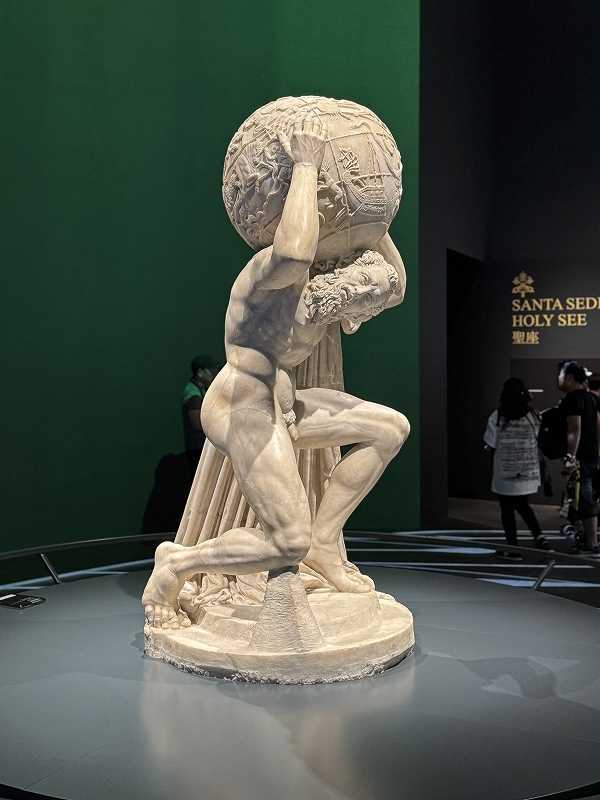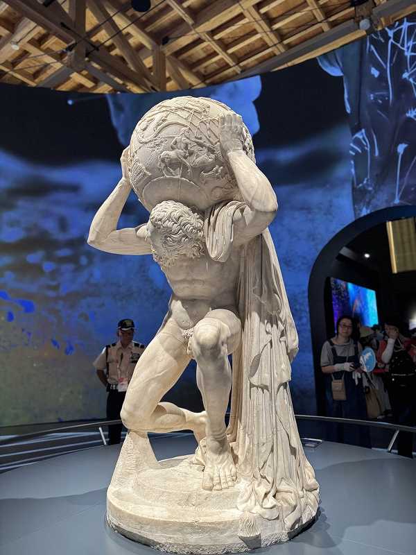 パビリオンの目玉 ファルネーゼのアトラス(紀元2世紀) 知識の重みに圧倒され膝をつくアトラス