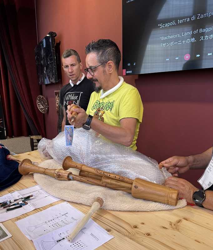 ↑この型、チャルメラを作る職人さん おひげが特徴的。職人さんに音をだしてと頼んだら、ドレミファソラシド~~と吹いてくれました。しかし、政府の方のインタビュー中だから静かにしろと注意を受けてしまった。ごめんなさい!でした。