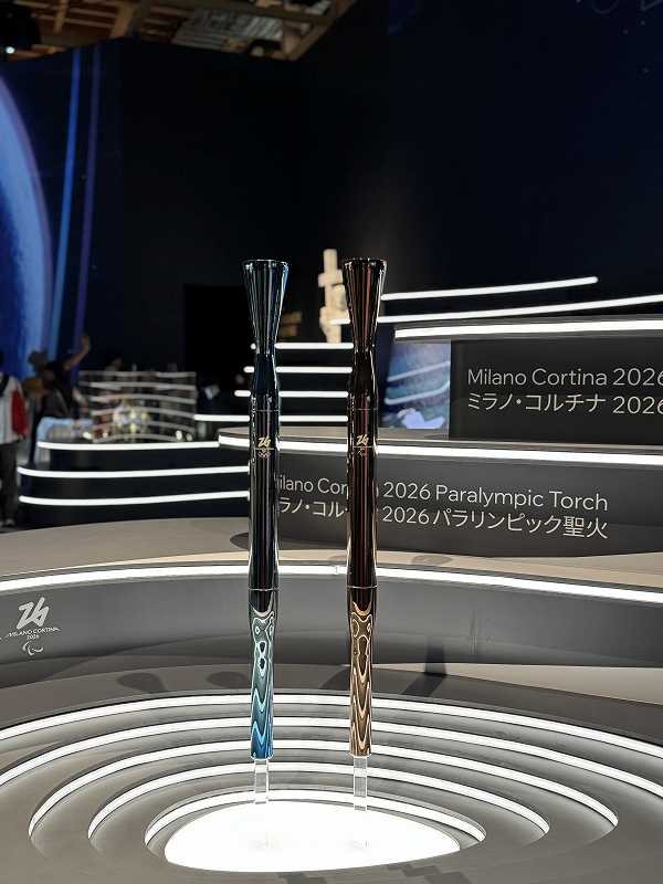 建築家カルロ・ラッティによってデザインされた、2026年ミラノ・コルティーナ冬季オリンピック2本の聖火