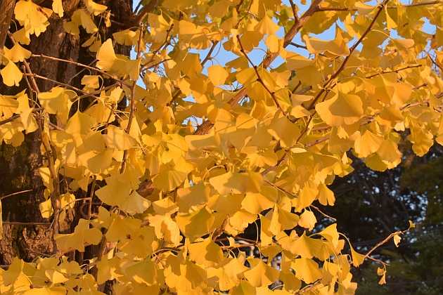 夕日に輝く銀杏の葉
