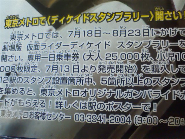 7月18日からメトロでディケイドのスタンプラリーをやるみたいです