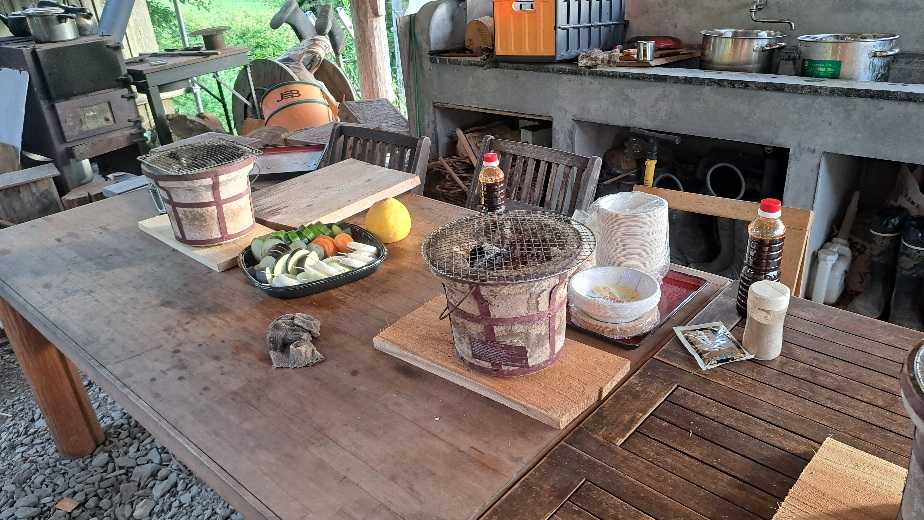 梅雨のあいまにBBQ 心地よい風の中ビールがすすみます😅