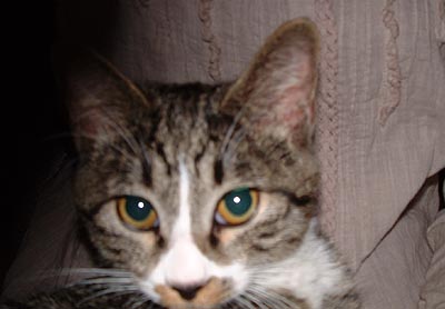 芋煮会中に捨て猫情報を聞き、急遽西蔵王まで保護しに行きました。 行く前は子猫と聞いていたのですが、少し育ってましたね(^_^;) 取り敢えず連れて帰り、友人の家で飼っていただくことに… 名前は『あんかけしっぽこ』と言う不思議なものになりました(^^) ドアップその1ドアップその2、ちょっと嫌そう…この後、この方に飼われることに(^^)さっそく遊ばれてます…後ろには前日の田酒空瓶が(^_^;)捨て猫のわりにはキレイなグレーの虎ちゃんです。