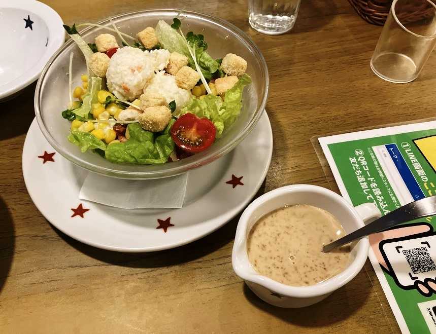 ポイントがもらえたのでそれを使う為にステーキのどんで夕飯を食べました。ここは夜でもスープとご飯とパンが食べ放題なのですね。有り難い事なのです。 サラダを頼んでみました。ハーフサイズでも結構な量です。二人で分けてよいぐらいの量です。 香ばしチキンとラムステーキです。ちょっとラムステーキは癖がありますが、スパイスでいい風味になっています。美味しく頂きました。 ポイントと割引券を使ってお得に食べられました。大体はこのコンボ技を使っていますw。
