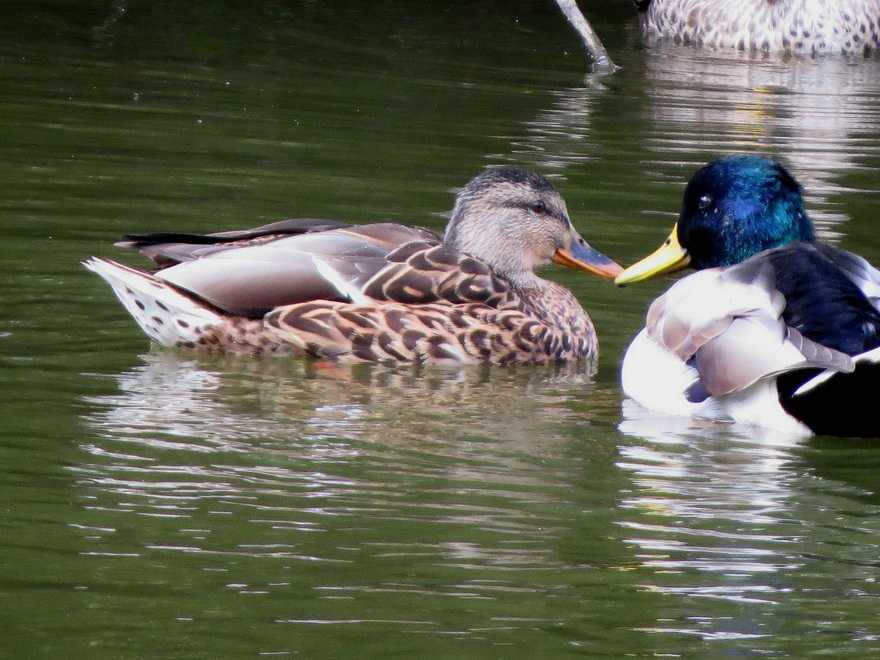 10日ぶりに松戸市千駄堀にある21世紀の森と広場を訪ねました。池でオカヨシガモ、マガモ、カルガモ、コガモ、キンクロハジロ、カイツブリ、バン、カワセミ、水面をカワセミが鳴きながら飛翔していき、林エリアでメジロ、エナガの混群が林の中を移動する姿と遭遇しました。くわえて、帰り道、上空をひらひらと軽快に飛翔し移動していったハイタカの姿(翼下面に黒い斑)を観察しました。(マガモ生殖羽と非生殖羽)写真一枚目と二枚目、三枚目がマガモです。一枚目の個体は黄色の嘴、全体的に明るい羽衣で雌生殖羽と思われ、二枚目の個体は橙色の嘴で黒色部がある雌幼羽と思われました。三枚目は、嘴が橙色で雌幼羽と思われる個体がカルガモと行動をともにしており、異なる種類で番のような行動をとっていました。(キンクロハジロ雌の頭部の形状)キンクロハジロ雌雄が各1羽、水面で羽を休めていました。雌は冠羽が短めで嘴基部周辺が白くなっている個体で幼羽と思われました。この個体を後方から観察するチャンスがあり、後方から頭部の形状を見ると頭頂のふさふさした羽毛があるのにそれ以外は刈り上げたような形状をしていました。(写真)2025年10月27日撮影