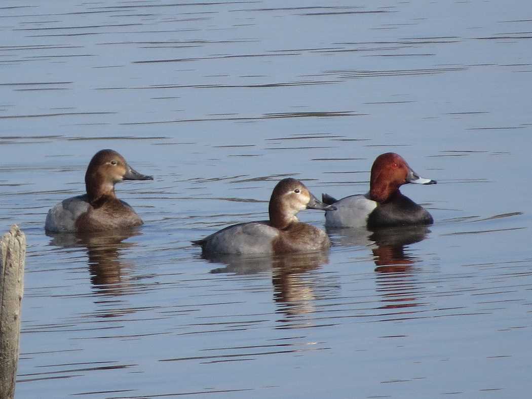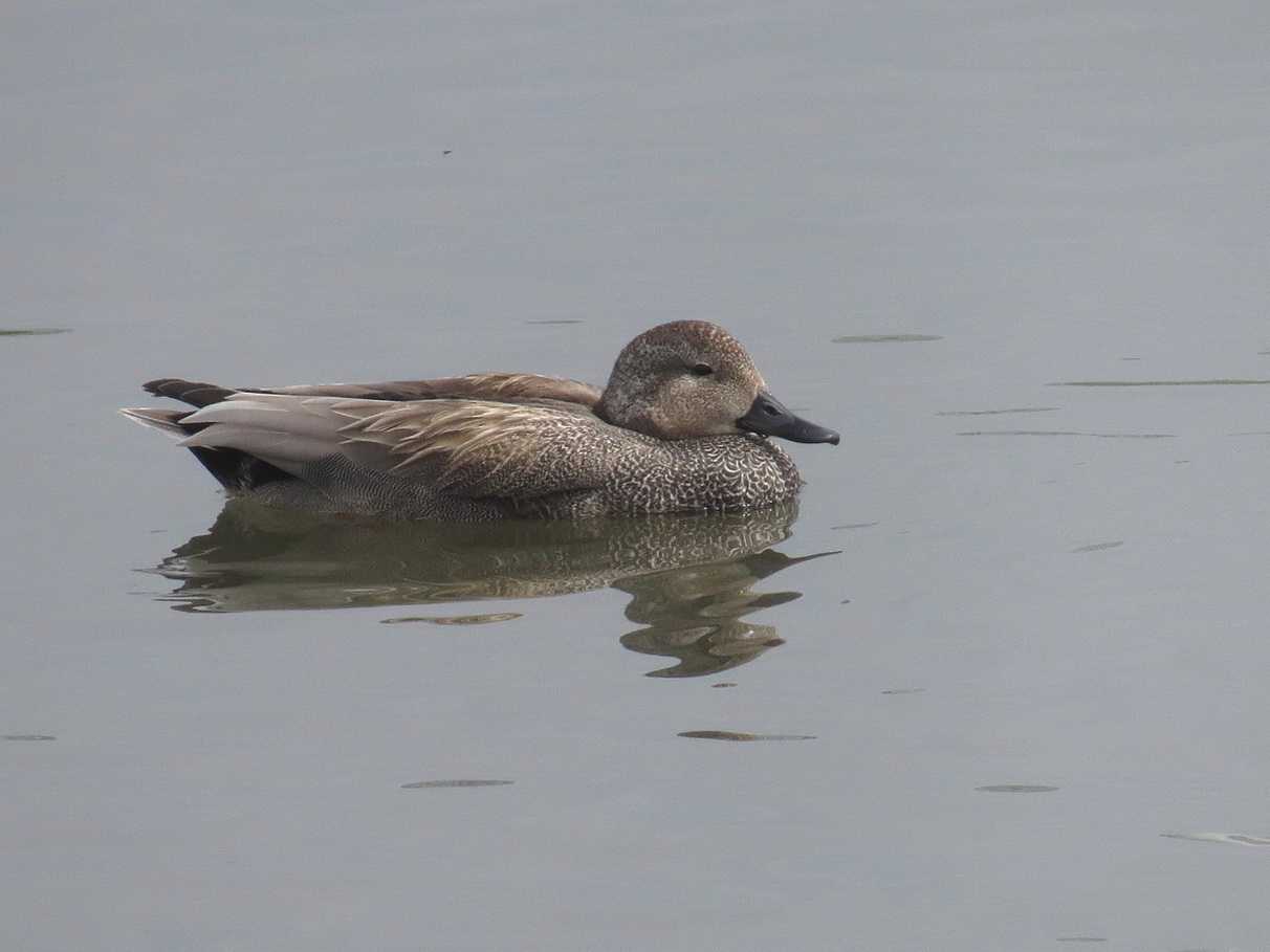 鳥友から手賀沼でオカヨシガモが見られなくなった経緯と雌雄などの識別について質問をもらいました。(かつての手賀沼におけるオカヨシガモ)冬鳥のオカヨシガモは、かつて手賀沼で100羽以上の個体が越冬していました。水生植物の越冬芽や葉茎を採餌していることが知られており、沼に生息していた水生植物が群れを支えていたものと考えられます。しかし、昭和40年代以降水生植物の減少が続き、2000年代に入って北千葉導水路の運用開始により利根川の水を手賀沼に導水された影響で沼の水位は上昇したため餌資源が変化し、2004年1月に100羽をこえる個体が飛来していたのを最後に激減しました。現在は、柏市北部で100羽前後を見かけるのみとなっています。(羽衣の特徴)(1)雄生殖羽一枚目は、2020年3月28日柏市内で観察した雄生殖羽個体です。頭部が褐色味のある灰色で、ごま塩状の黒褐色の斑があります。嘴は黒色、三列風切は灰色で先端が尖って下方に垂れ下がっています。(2)雄エクリプスから生殖羽に換羽中の個体二枚目は、2020年2月2日に柏市内で観察した雄エクリプスが生殖羽から換羽中と思われる個体です。雨覆のえんじ色が広範囲に見られ、三列風切が灰色味がかっています。(3)雌幼羽三枚目は、2020年1月12日に松戸市内で観察した雌幼羽と思われる個体です。上面が暗色で、嘴の橙色部に小黒点が見られないこと、脇最上列の各羽が尖りV字に見えることなどから雌幼羽と思われます。(4)雌生殖羽四枚目は、2024年12月29日手賀沼で観察した雌生殖羽と思われる個体です。嘴が橙色、三列風切に生殖羽のような斑がなく。肩羽、脇羽に丸みがあることなどから雌生殖羽と思われます。五枚目は、2021年3月15日松戸市内で観察した雌生殖羽を正面から見たところです。腹が白く、幼羽の胸から腹にかけて小斑があるのとは違いがあります。六枚目は、2020年2月2日柏市内で観察した雌生殖羽と思われる個体です。嘴峰が黒く、嘴は橙色です。腹は白く幼羽のように胸から腹に小斑は見られません。(5)雄生殖羽七枚目は2023年12月3日手賀沼で観察した雄生殖羽です。嘴は黒く、胸にうろこ模様があり、頭上が茶色、額と後頭が茶色に見えました。八枚目は2022年11月10日手賀沼で観察した雄生殖羽です。七枚目と同様ら嘴が黒く、胸にうろこ模様があります。頭部の半分程度が暗色で、その他が淡色でコントラストが強い印象がありました。雄の頭部には個体差が大きく、全体に灰色でコントラストが弱いヨーロッパに多く見られる個体に出会うこともあります。(5)翼鏡九枚目は2022年10月31日に柏市内で観察した雄個体です。翼鏡の白黒は、他種にはない特徴です。(6)類似するマガモとの違い2019年12月8日に印旛沼で観察したマガモ雌個体です。マガモは嘴がオレンジ色で、上部が黒く、額から嘴のラインは滑らかに見えます。