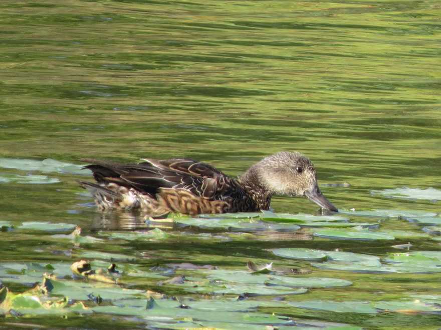 都内水元公園を訪ねました。最寄り駅JR金町駅からバスで桜土手で下車し、メタセコイヤの森周辺までの間を探索しました。ごんぱち池でヒドリガモが採餌している姿を観察し、金魚展示場、花菖蒲広場前、水元大橋までの水域でヒドリガモ、ハシビロガモ、コガモ、カルガモ、カワウ、ダイサギ、チュウサギ、オオバン、カワセミと主だった水辺の鳥、木のてっぺんにツツドリ赤色型が降り立つ姿を観察できました。(水元の自慢はカモの近距離で観察できるところ)カモは江戸川方面から飛翔し小合溜中央部に降り立つことが多く、最初は距離が遠いのですが、待機していると移動し種類ごとの特徴を観察するのにもってこいです。写真一枚目は上空から水面に降り立ったばかりのヒドリガモの群れの一部です。遠目でも雌雄やエクリプスの特徴はわかりますが、待機して撮影したのが二枚目、三枚目の写真です。四枚目、五枚目はハシビロガモです。四枚目は、手前が成鳥雌、奥が若鳥と思われる個体です。成鳥雌は顔が明るめの見え、脇が丸みを帯びています。若鳥は上面が暗色で、顔も暗色です。六枚目はコガモ成鳥雌個体です。下尾筒の両側に白色の線があり、嘴が黒色(飛来当初は基部側面に黄色味がありますが、その後黒くなります)、脇が丸みがあります。(その他の水辺の鳥)小合溜の水面をオオバンが移動し、浅瀬ではダイサギ、カワセミの若鳥を観察しました。また、水元大橋の近くではチュウサギが水草の上を軽快に移動し餌を物色していました。このほか、水元大橋からメタセコイヤの森までの間で、上空をミサゴが飛翔する姿を発見しました。翼角で翼が曲がり、下面の白さと胸に褐色の斑を観察。なお、ツツドリ赤色型は、記録写真を撮影したかったのですが、カラスの群れが飛来して移動してしまいかなわずでした。(写真)2025年10月7日撮影