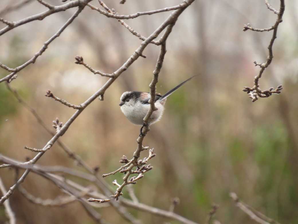 エナガの姿は、シジュウカラとの混群となっていて葦原と桜の木に姿がありました。