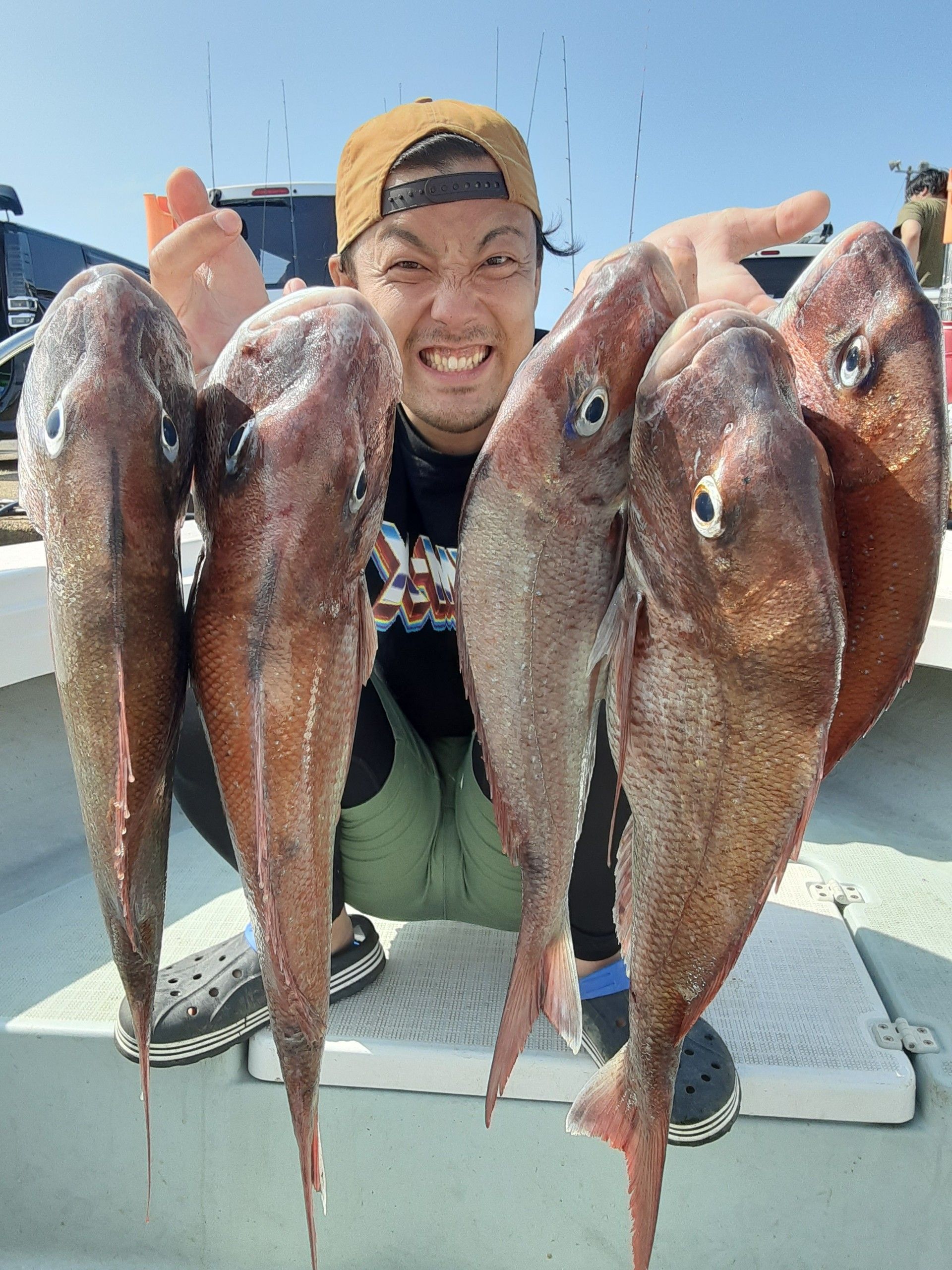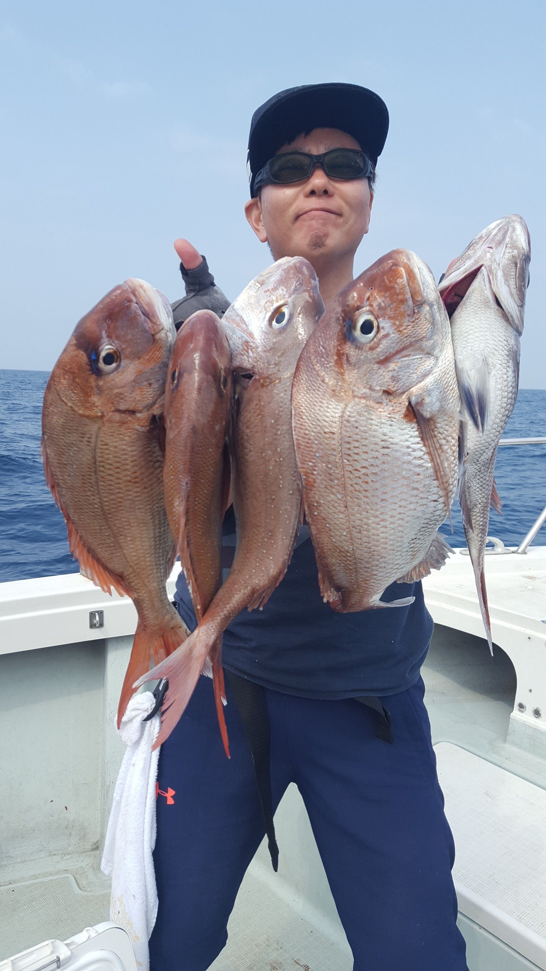 今日はチャーター様で マダイゲームでした! 朝の二流しは暗雲漂いましたが😅 下げに転じてから マダイのやる気スイッチON✨✨✨ 途中ワラサのありがたい猛攻に 合いましたが😅 それをかわせばマダイ✨ 良型多数の数も満足釣果で 今日は早めの納竿🌠 酒田夏マダイの陣!期待大です👏 皆さんお疲れ様でした🙇♂ また8月お待ちしております(笑) マダイ、ワラサ、レンコダイ、マゾイ、クロソイ、ウッカリカサゴ、ミズガレイの釣果 持てるだけ~✴️ MR.1.5号と申しますかw 安定のツ抜けでした👏 おめでとうございます👏 クーラー満タンお見事でした👏 カットイン!(笑) マッスルさん😁 某さんの中身✨ 海峰 09043192261
