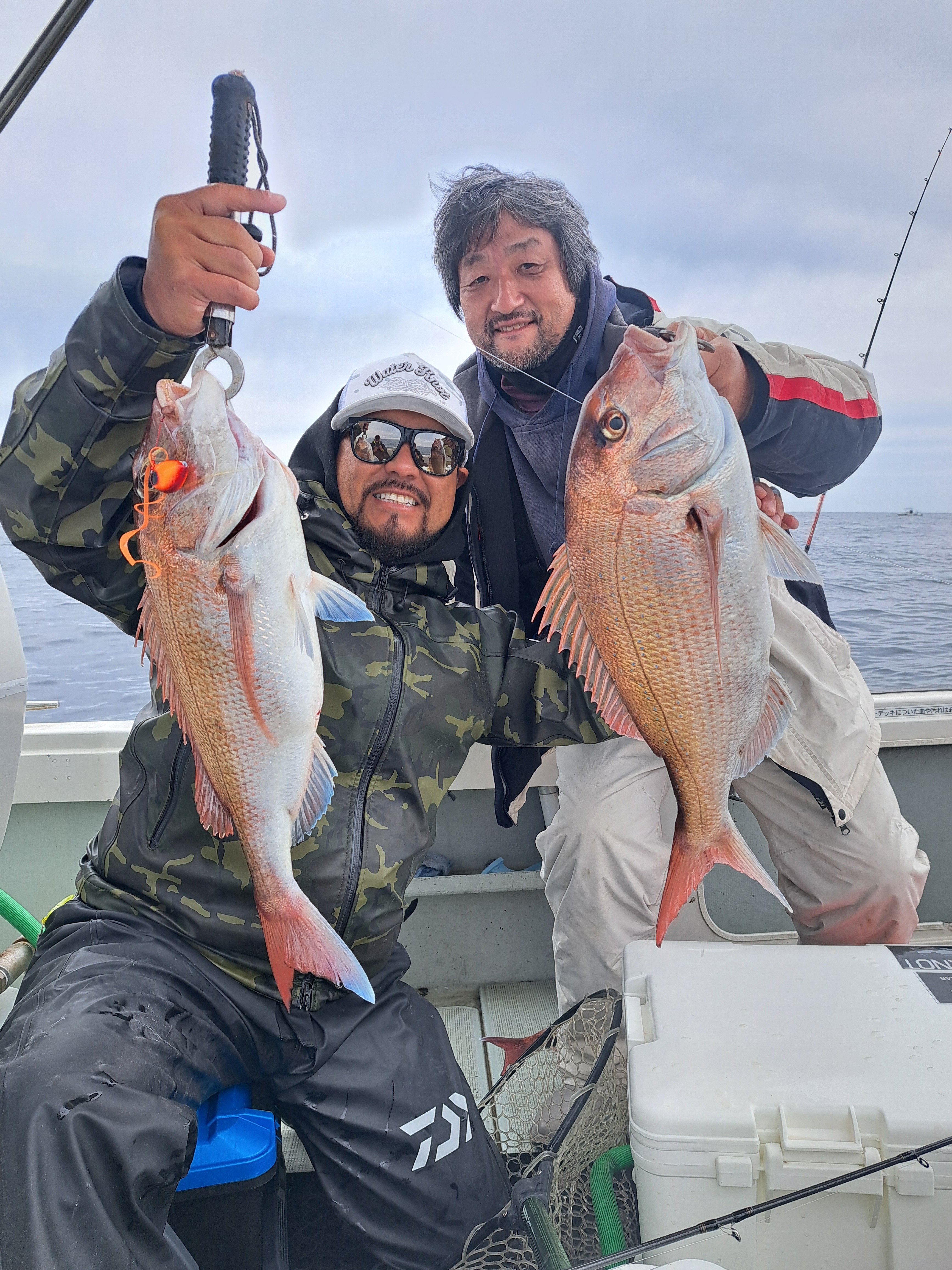 飛島ジギングの予定でしたが予報悪く、、、3名の有志様でマダイ便へ♪うぅぅぅぅぅぅぅ~朝は潮飛びすぎ😅で…コレッと言ったジアイなし…手強い1日ですた!明日はひとつ…お手柔らかにと願います😳大変お疲れ様でした!また宜しくお願いします🙇♂️素直になって頂き鯛です、、、躍動感🤣ゲストは5~6キロ台海峰 09043192261