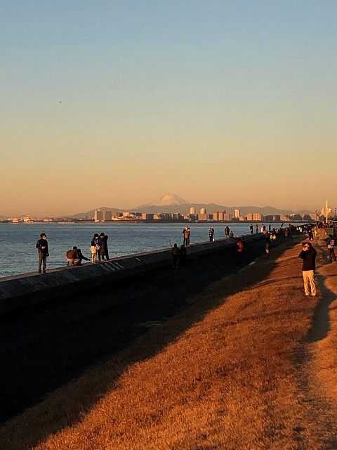 浜に向かうと既に帰る人も、陽は水平線を少しばかり上がっていた。しかし、まだ登りたてで新鮮に光り輝いているので写真を数枚、後ろに目をやると富士山がこれも写真に、なんとか今年の年頭行事も無事に終えた。