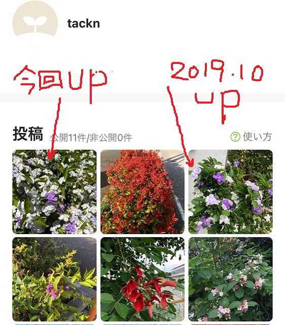 帰ってから、以前に使っていたアプリ green snap にお尋ね写真をアップしておいた。