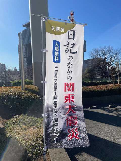 用事を済ませてバスで駅に向かう途中、窓の外に「日記のなかの関東大震災」と書いたノボリが目に入った。