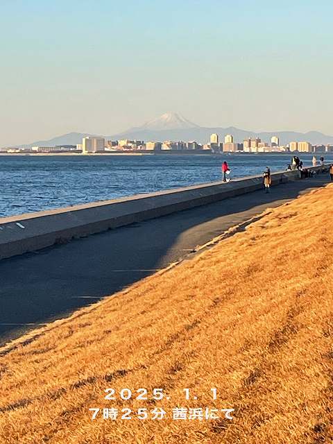 ひと段落しとあと、浜に向かい初富士を拝む。こんな美しい山が見えるところに住んでいるなんて本当にありがたいこと。 富士山はいつ見ても裏切らない。 多少雪が薄めに見えたが満足。昨夕の富士とはまた趣が違う。