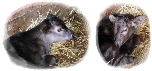 5月12日(月)週初めの今日は目まぐるしく時が流れて行きました。今宵も案山子の宿にお立ち寄り頂き有難うございます。先日の6日が出産予定日の牛がいたんですが昨日の朝になっても一向に生まれる様子もなく獣医さんに電話して来て診て貰いました。1日遅れるごとに、お腹の中で大きくなるのであまり遅くなってしまうのは危険が伴います。先生は出産を促進する注射を2本打って行きました。夕べの9時以降から、マヤの中をぐるぐる回り始め立ったり座ったりを繰り返していましたが一向に生まれる気配がありませんでした。ただ、この動作は陣痛始まった証拠でもあり近い内に生まれる可能性が高いので目離しは出来ず様子を見ておりました。時計はすでに午前零時を回っていました。まあ、寝ずの番と言う所ですかね。普通ですとこの動画のように、人が手を掛けずとも自然に生まれてくるのですが・・・。この親牛は、初産の時も引っ張って仔牛を出しているので油断が出来なかったのです。夜中の1時を回った頃、第一破水がありましたが前足が出て来ません。すぐに獣医先生に電話連絡して来てもらいました。夜分にも関わらず、すぐに来て下さいました。やはり引っ張って仔牛を出す事になり急いで準備。カミさんも、家で待機していたので、携帯で連絡しお湯などを持って来させました。先生が手際よく前足にロープをかけ、滑車を利用して私と二人で引っ張ります。時間にして10分位でしょうか。頭が出れば後はしめたもの、するっと出て来ました。親牛は一時腰を抜かして座り込みましたが母子共に無事でした先生は後は大丈夫と判断し帰りましたが、初乳を飲むまでは安心できない為暫く様子を見ました。その間に、カミさんに冷凍初乳を解凍して貰い人肌の温度位にして準備させました。人が手を掛けた為、親牛にとっては自分が産んだ子牛と自覚するまで少々時間がかかりました。なかなか、生まれた子牛をなめてくれません。とりあえず、布きれで濡れた身体を拭いてあげて解凍した初乳をカミさんと二人で飲ませる事にしました。 私が仔牛を立たせて倒れないように支え、カミさんが初乳を飲ませます。さすが男の子です。ジュバジュバと音をたてて、500CCの初乳を一気に飲み干しました。とりあえずこれでますは安心です。その後、何度か親牛のお乳の所まで仔牛を誘導しましたがなかなかおっぱいをくわえてくれません。一旦休憩して様子を見ていると、やっと自分の子と自覚したのか子牛をなめ始めました。(= ̄▽ ̄=)V やったねもうこれで安心です。後は親牛に任せても大丈夫我々はやっと家に帰る事が出来ました。時計はすでに3時を回りました。さあ帰って寝よう(*´0)ゞファァ~~♪さすがに今朝は、カミさんもいつもの時間に起きる事が出来ず私が5時半頃に起こしましたが、寝不足は間違いないですな。「会社を半日でも休めば」って言ったところ、「大丈夫だぁ」って言って、何時も通り出勤して行きました。久々に子牛が3頭揃う事になりました 昨年暮れに生まれた「美津華」君先月に生まれた「はなこ」ちゃんそして、今回は男の子。名前はこれから考えます(^^)vちなみに、親牛の名は「さくら」で父が「安福久」と言います。カミさんは普通通り会社へ、私も午前中は農作業、ごごからは自治会長会議に出席と慌ただしい1日となりました。今日は早く寝ようと思っていましたが、写真整理してこのブログ書いてたらもうこんな時間です(;´▽`A``長々と最後までお付合い有難うございました。ではでは皆様、明日も良い1日をお過ごし下さいませホントにもう風呂入って寝よう(/0 ̄) ファ~ネムイ!