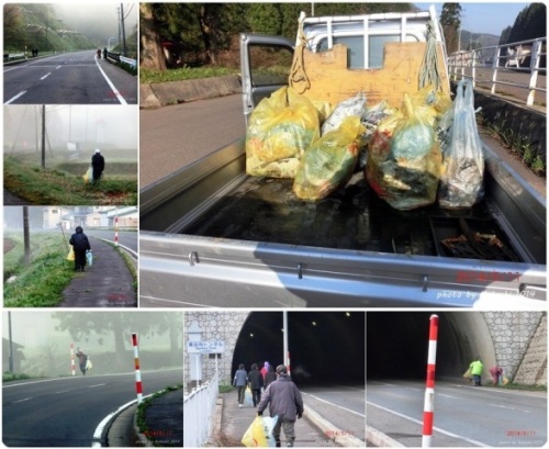 5月11日(日)おはようございます。今宵も案山子の宿にお立ち寄り頂き有難うございます。日曜日の今日は、今朝早くから自治会行事の一環である河川クリーンアップを行いました。各地区一斉の行事でもあるこの作業は、毎年この時期に実施されています。河川クリーンアップと言っても、道路や路肩のゴミ拾いがメインになるのですが我が地区は、国道の延長2~3kmの区間を実施しました。朝5時からの作業なので、目覚ましを4時半にセット。万が一の為にカミさんもその頃にタイマーをセットしましたが、自分の携帯アラームで何とか目が覚めました。急いで準備して、会館前に5時に集合。今回は、うちの息子も参加してくれました。 11世帯の内2世帯が不参加。一人の方は最初から参加できない旨を連絡受けていたのですが、もう一人の方は忘れたそうです。これじゃ困るんですけどね(^^);作業終了後、欠役金をしっかり徴収しました。5時から始めて1時間半位で終了し、ゴミはご覧の通りです。この他にもあったのですが、ゴミステーションに一度置いて来てますので毎年のことながら結構な量ですね。今年は幸い不法投棄と思われる、粗大ごみ等はなかったので助かりましたが、昨年はホイール付きのタイヤ4本とか布団までありましたからね(^^);まあ、モラルの問題でしょうけどこう言うのは困りもんですよね。自分がされて嫌な事はして欲しくないです。作業開始時は、靄がかかってかなり冷え込んでおりましたが終わる頃にはお日様が照って良いお天気になりました。終了後、皆さんに飲み物のモーニングサービスをしミーティングをしましたが、顔ぶれは私も含めて皆ご年配ばかりですな(^^);でも、今回はうちの息子も参加しましたし、小中学校のお子さんを持つ若いお母さんも親子で参加してくれたのがとても嬉しかったです。小さい内から地域のみんなと触れ合う事は大事な事だと思いました。今日もこうして1日が始まりました。お休みの方は良い休日を、お仕事の方は今日も頑張りましょう!ちなみに私は、重機のリースが今日までなので、午前中使用して午後から洗車などして返す準備をする予定です。ではでは皆様良い1日をお過ごし下さいませ