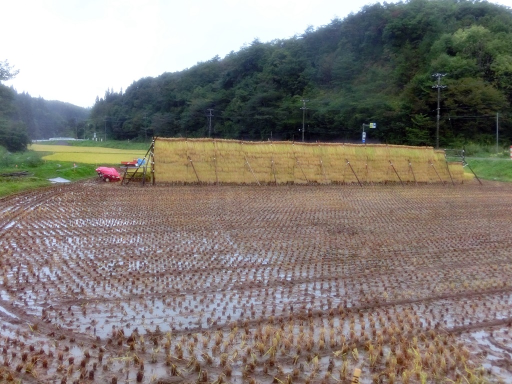 10月18日(日)相変わらず良い天気が続き脱穀作業も今日で最後になりました。 日頃からのご訪問ありがとうございます <(_ _*)> 家の向かいの山も色づき始めたようです。今朝の気温は5℃、寒い朝でした。昨日は、最後の「あきたこまち」の脱穀作業を終えました。 機械のトラブルもなく、仕事は捗り夕方までに終了。 機械や道具などを撤収して、田んぼに残ったのは稲架だけに。 今日は、午前中に昨日脱穀したワラを友人の所へ2回運びました。 彼は先日、お袋さんを亡くし、親父さんとふたりで牛を飼っています。親牛が5頭ほどいて、牛舎もかなり大きいです。彼は数年前に、牛に足を踏まれ、それが原因で身体が不自由になりました。オイラのおっ母と同級生で、若い頃はスポーツ万能で一緒にバレーボールをした仲間です。それに、麻雀友達でもあり、週末ともなれば宿周りで徹満をしたものです。不自由な身体でも、根性だけは人一倍強い男だと思っています。同情から、こうゆう事をしている訳じゃなく友達だから・・・少しでも・・・そんな思いから、毎年この時期になるとワラを運んでいきます。ワラは、単なるこじつけで、ほんとは彼と何気ない世間話をしたいだけなんだけどね^^彼も嫁さんはいません。親父さんも齢ですし、これからどうするんでしょうね・・・そして、午後からいよいよ稲架掛けの最後の脱穀をしました。 この稲架は、一番最初に稲刈りした「たつこもち」です。乾燥が良いので、あっという間に脱穀が終わりました。このもちワラは、畳屋さんに買い取ってもらいます。脱穀終了後、品種が変わる為、乾燥機を全部掃除してうるち米と混ざらないようにしてから籾を乾燥機に入れました。乾燥機で測定した水分の平均値は16.8%と今回一番乾燥状態が良かったです。乾燥機の起動時間も短時間で済みました。太陽の恵みを一杯受けたこの「たつこもち」も美味しいモチ米になる事と思います。何はともあれ、屋内に全て入ったので気持ち的にゆっくりしました。この後作業も山積みだけど、まずはひと段落という事で今夜はすきやき鍋で、「ほこりはらい」をしました^^まんず、うめがった ヾ(@⌒¬⌒@)ノ 下書き途中で寝てしまい、真夜中のアップになってしまいました(笑)せば、まだなヽ(*^^*)ノそろそろ、寝ねば、朝まおぎれねぐなってしまうww寝るべ!ねるべ!お(ノ ̄0 ̄)ノや(o ̄・ ̄)oす(。_ _)。みzzz..