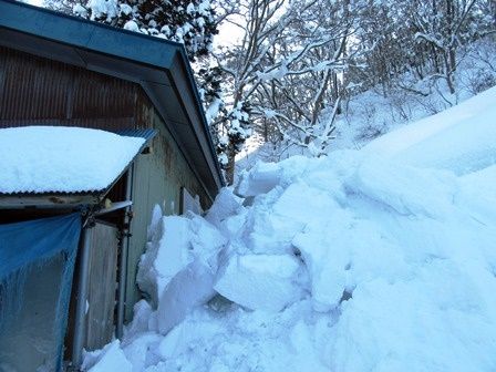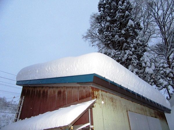 なかなか落ちないのが作業小屋の屋根の雪。